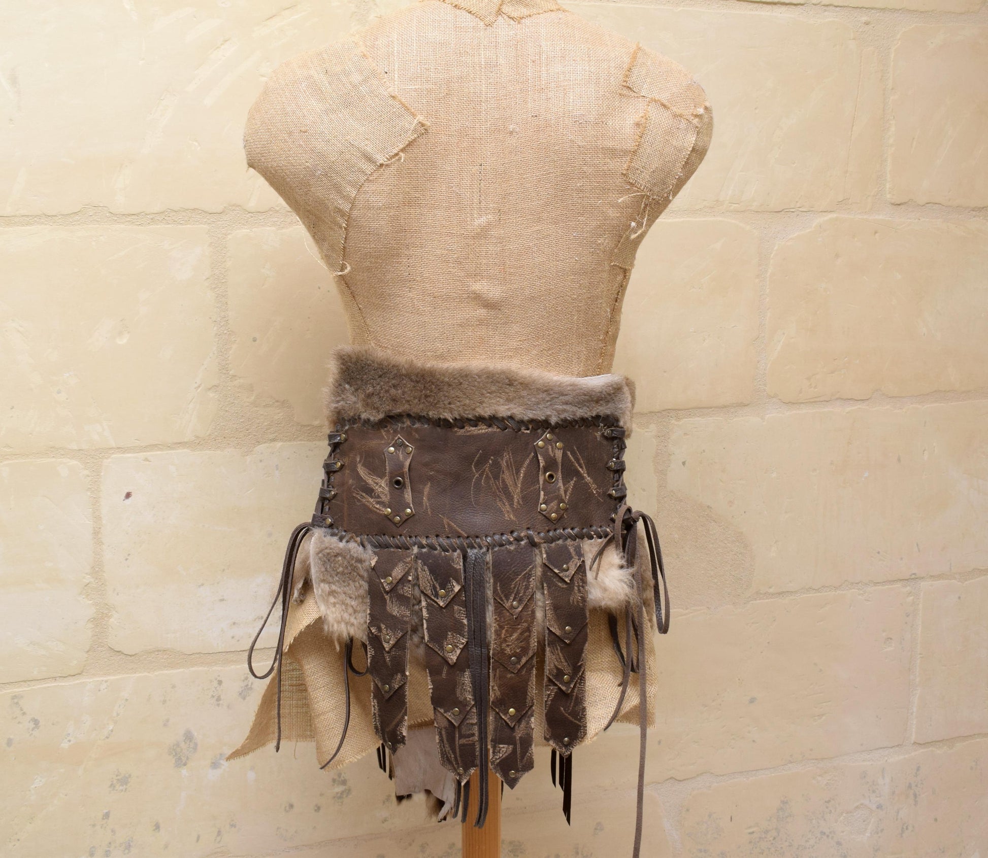 Distressed Leather Gladiator Belt: Fur skirt, Viking Cosplay Armour