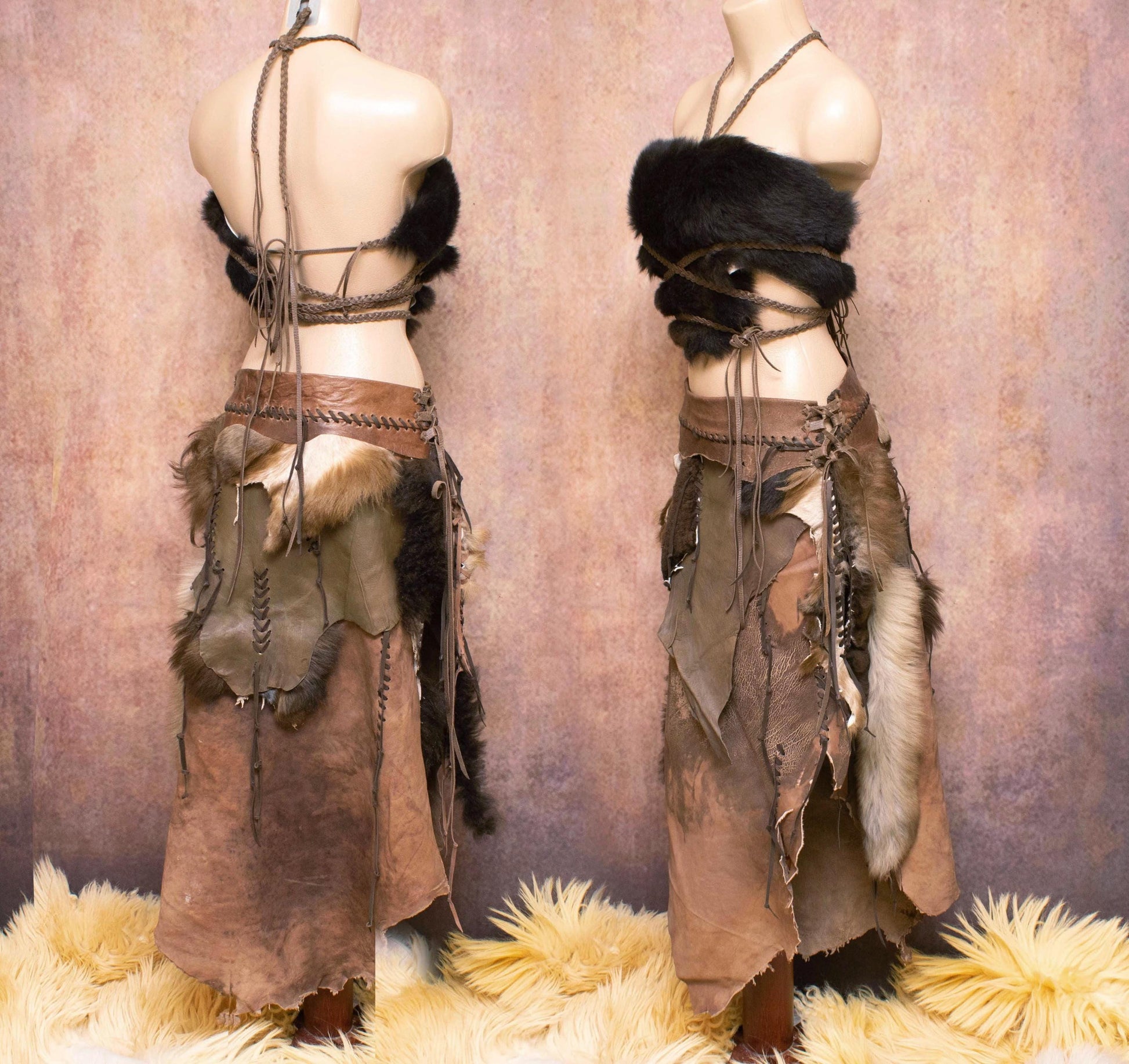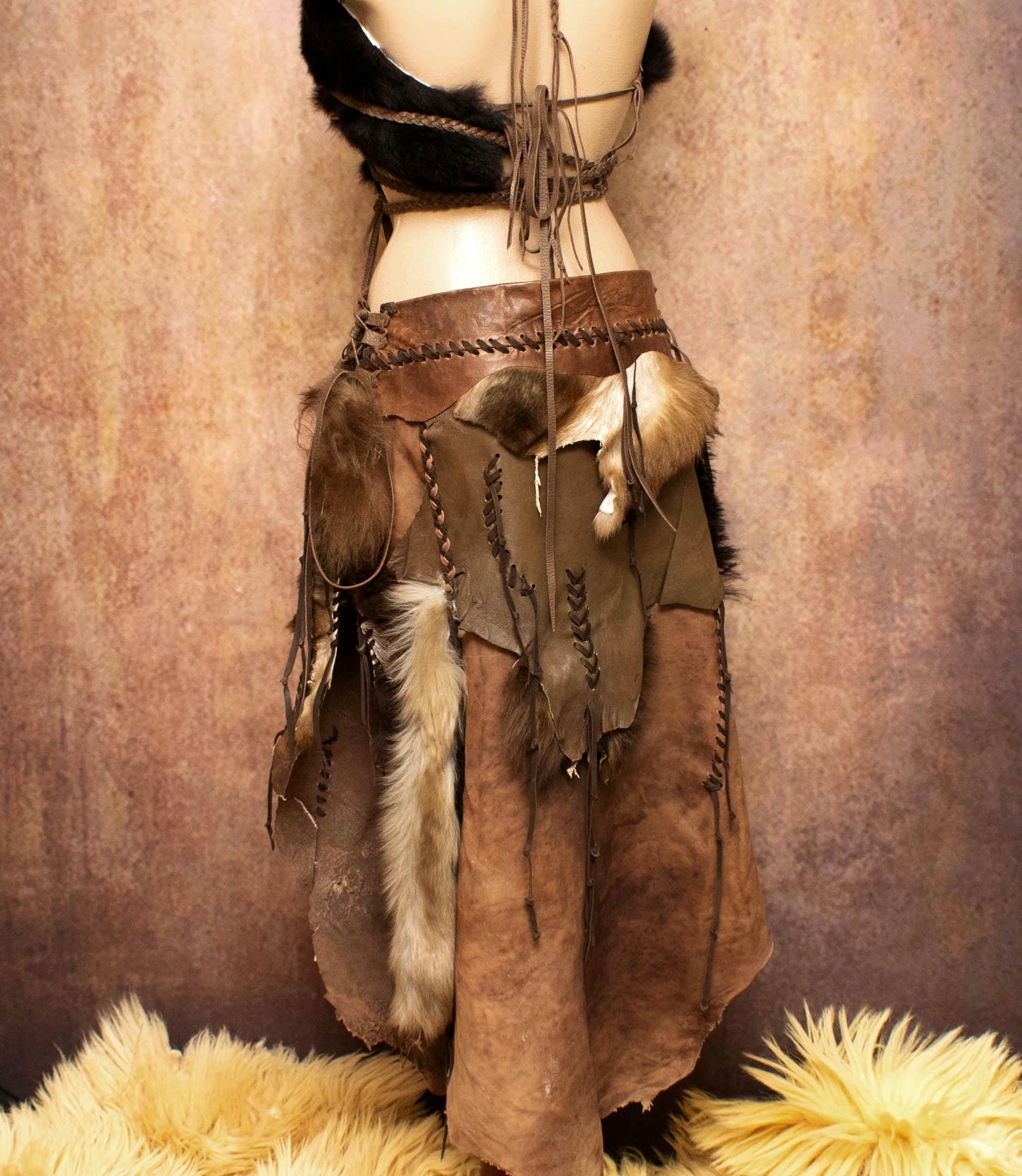 Leather & Fur tribal Skirt: Prehistoric Primitive Style skirt