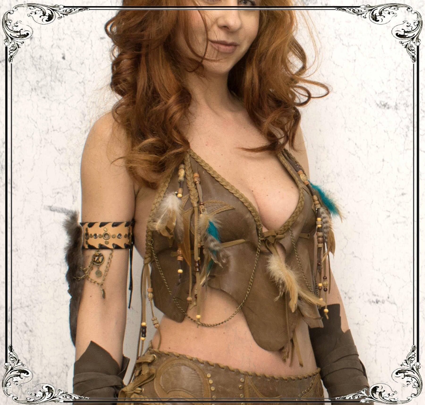 Leather Halter Bra Top: Hand Braided Tribal crop top